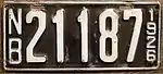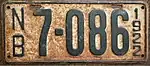 1920 | Yellow serial on black flat metal plate; vertical "NB" and "1920" at left and right respectively | none | 12345 | 1000 to approximately 11800 | |