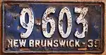 1935 | Embossed silver serial on black plate; "NEW BRUNSWICK-35" at top | none | A-1234 | Coded by region (A) | |
