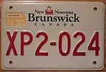 As of 2024, plates are issued by the New Brunswick Department of Justice and Public Safety through its Motor Vehicle Branch. Only rear plates have been required on all vehicles since July 15, 2019.[2]