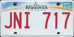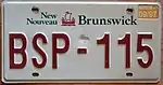 2003–09 | As above, but with revised wordmark ("New" to the left of the galley, "Nouveau" to the right and "Brunswick" and "CANADA" below) | none | AB1 234 | AA1 001 to unknown | |