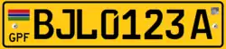 27x20 cm Black on yellow Gambian Flag as well as the text GPF on the top left corner of the license plate | |||