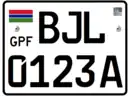 From 2019 onwards, a black-on-white colour scheme was introduced. This new license plate format uses the font FE-Schrift. The flag strip at the bottom of the license plate has been removed in this version, and replaced by a flag on the top left corner of the plate. Underneath the plate, there's a 3-letter code, GPF. GPF isn't the country's standard traffic code, that would be WAG. GPF stands for The Gambia Police Force, who are responsible for issuing of the license plates.