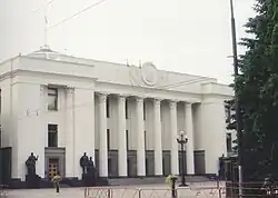 It is the place where the Ukrainian parliament (Verkhovna Rada) meets for all regular and ceremonial sessions. The building was erected between 1936–38 to a design by Volodymyr Zabolotnyi in the neoclassical Ukrainian architectural style.[1] Zabolotny was awarded the State Prize for that project in 1940 and was appointed the chief architect of the city.