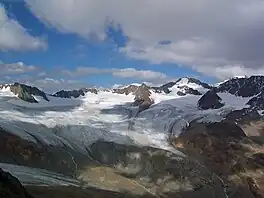 The Vernagtferner is a glacier located in the Ötztal Alps in Tyrol, Austria, which covers an area of 7.31 km², making it one of the largest glaciers in the Eastern Alps. The glacier is situated on the southern side of the Weißkamm. The Hochvernagtspitze and the Brochkogel are the highest mountains within its catchment region.[1] While some maps divide Vernagtferner into Kleiner Vernagtferner and Großer Vernagtferner, with the eastern portion of the Brochkogel area referred to as Kleiner Vernagtferner, these sub-areas do not meet scientific criteria for separate designation.[2]