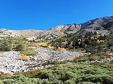 - ↑ Les Conques is a vast, mountainous amphitheatre rising from an altitude of about 1800 metres to the summit of the Canigou massif at 2785 metres. Les Conques is mostly covered by scree, boulder fields, and glacial till. This material is derived from the underlying geological formations - Ediacaran metasediments, Quazemi gneiss (Ordovician), and leucogranite (Hercynian). Its predominance in this area is a testimony to the glacial and periglacial conditions which have prevailed at this altitude during at least the last 2 million years (of the Quaternary period). The whole amphitheatre is thought to have been covered by a glacier during the most recent (Devensian) glacial period (that is, within the last 100,000 years).