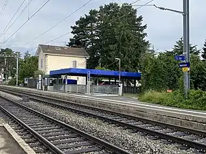 Vernier railway station (French: Gare de Vernier), formerly known as Cointrin, is a railway station in the municipality of Vernier, in the Swiss canton of Geneva. It is an intermediate stop on the standard gauge Lyon–Geneva line of Swiss Federal Railways.[1]