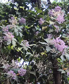 Vernonia arborea is a species of mid-level rainforest tree in the Composite, or Daisy family Asteraceae that is found in Western Ghats of India and Sri Lanka[2] and is also widespread in the East Indies. This tree, and Brachylaena are contenders for the tallest of all composite trees ("daisy trees") with the variety V. a. pilifera (called Maremboeng) of Sumatra reaching a height of 117 feet (36 meters). Another variety, V. a. javanica of Java (called Semboeng Kebo) almost as tall (111 feet, or 34 meters) is up to 3 ft 5 in (104 centimeters) thick, the most massive of all composites.[3] Its leaves contain a useful fungicide.[4]