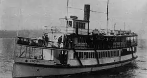Verona was built in 1910 at the Martinolich shipyard at Dockton, Washington. The vessel is best known for an event which occurred on November 5, 1916. The vessel was transporting members of the Industrial Workers of the World to Everett, Washington, in connection with a labor dispute. On arrival in Everett, a shooting broke out which has since become known as the Everett Massacre. In 1923 Verona was owned by the Union Navigation Company, a Poulsbo concern, which in that year sold the vessel to Kitsap County Transportation Co.[1] From 1935 to 1936 Verona was owned by the Puget Sound Navigation Company.[1]