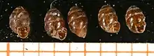 | Five shells of Vertigo antivertigo, scale in mm | |