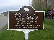- ↑ Kathleen LaFrank (October 2009). "National Register of Historic Places Registration: Vestal Central School". New York State Office of Parks, Recreation and Historic Preservation. Retrieved 2010-06-15. See also: "Accompanying 11 photos".