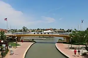 Veterans' Bridge is a $1.5 million pedestrian footbridge and monument honoring all veterans (usually those who have ties to Pueblo, Colorado) regardless of branch of military service or whether they served in peace time or war. The bridge — located on the Historic Arkansas Riverwalk of Pueblo — was formally opened and dedicated to the public on Veterans Day, November 11, 2010.[1]