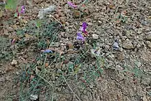 Vicia palaestina, the Palestine vetch, is a species of flowering plant in the family Fabaceae. It is native to the eastern Mediterranean region; Greece, the Aegean Islands, Turkey, Cyprus, the Levant, Sinai, and Iraq.[1] Carbonized remains of its seeds have been tentatively identified in Mousterian Neanderthal deposits in Kebara Cave, Mount Carmel, Israel.[2] Unlike many species of vetch, its seeds are non-toxic, and are edible even when raw.[3]