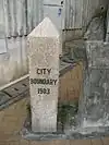 In 1903, the Hong Kong Government erected several boundary stones to mark the limits of Victoria, measuring 98 cm in height, tapered at the top and with the inscription "City Boundary 1903". As the city’s boundaries were clearly defined by ordinance, these stones were more just physical markers.[16]