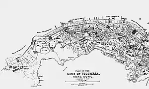 The City of Victoria,[1] (Chinese: 維多利亞市[1] or 維多利亞城[2]) often called Victoria City or simply Victoria (Chinese: 維城), was the de facto capital of Hong Kong during its time as a British dependent territory.[3] It was initially named Queenstown but was soon known as Victoria.[4] It was one of the first urban settlements in Hong Kong and its boundaries are recorded in the Laws of Hong Kong.[5] All government bureaux and many key departments still have their head offices located within its limit.