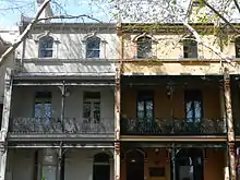 Roughly opposite Embarkation Park, there is a terrace of homes designed in the Federation Filigree style, using woodwork instead of the more usual wrought iron.[5] They are an unusual sight in Sydney, where terraced homes are almost invariably designed in Victorian styles.