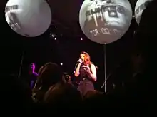 "Video Games" was performed by Del Rey in a number of live appearances, including for MTV Push[62] and at the Bowery Ballroom, where, according to Eliot Glazer of New York, "the polarizing indie hipstress brought her 'gangsta Nancy Sinatra' swag".[63] Matthew Perpetua of Rolling Stone commented that, despite Del Rey being nervous and anxious while performing the song live, the singer "sang with considerable confidence, though her transitions from husky, come-hither sexuality to bratty, girlish petulance could be rather jarring".[64] Del Rey also performed the song on Dutch television program De Wereld Draait Door,[65] on British music television show Later... with Jools Holland,[66] and in an intimate show at Chateau Marmont in Los Angeles, California.[67] On January 14, 2012, Del Rey performed the song on Saturday Night Live (along with "Blue Jeans"). Her performance soon came under scrutiny and was even criticized by NBC anchor Brian Williams. Williams referred to the performance as "one of the worst outings in SNL history".[68] Actor Daniel Radcliffe, who hosted the show the night Del Rey performed, quickly came to her defense, stating that criticism toward her was less about the performance and more about "her past and her family".[69] On February 2, 2012, Del Rey performed the song on The Late Show With David Letterman where according to Rolling Stone she gave a "much more controlled and dramatic performance than on SNL."[70] Del Rey performed "Video Games" live at ECHO Awards in Berlin, March 22, 2012.