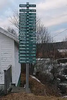 A series of signs in Vienna designating the distances to other United States cities named Vienna.