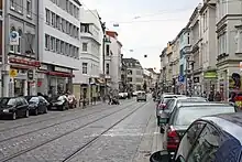 In the mid-20th century, the area around Ostertor fell into a sorry state because there were plans to build an expressway along the Mozartstraße, one of the principal streets in Viertel. After prolonged protests, the plans were eventually abandoned in 1973. With the threat of demolition no longer looming, the old facades were restored, making the district one of Bremen's most presentable and lively neighborhoods. New buildings are now designed so that they match the local color scheme and fit into their historic surroundings.[2]