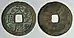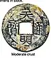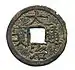 The first cash coins of the Lý dynasty produced during the reign of Emperor Lý Thái Tổ were the Thuận Thiên Đại Bảo (順天大寶), these were among the largest early Vietnamese cash coins with a diameter of 25.5 millimeters.[19][20] All known variants of this cash coin feature the Chinese character Nguyệt () on the top of their reverse sides.[19]
