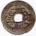 However, in 1871 the production of zinc cash coins stopped as many mines were being blocked by Chinese pirates and the continued production of these coins would be too expensive.[49] Other reasons for the discontinuation of zinc cash coins despite them being indispensable to the general populace were because they were heavy compared to their nominal value and the metal was quite brittle.[49] Following the establishment of the French colony of Cochinchina the chaotic monetary situation of Đại Nam severely worsened as Qing Chinese merchants quickly took advantage of it and started producing poor quality cash coins to bring to the colony where no regulations against their activities existed.[51] The Tự Đức Emperor tried to search Qing merchant ships, make outposts block their entry, and ban Qing Chinese merchants from bringing in too much money.[51] Though by 1879 the Nguyễn court was forced to accept the copper-alloy Hành dị dạng tiền (deformed money) at a value of 3 zinc cash coins, provided that the cash coin in question was quite similar in quality to the indigenous Vietnamese currency.[51]