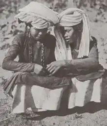 Two ethnic Cham women counting cash coins (1919).