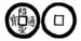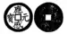 The inscriptions of Vietnamese cash coins can be written in either the Viết chéo (曰湥 / 曰袑, top-bottom-right-left) style or the Viết thuận (曰順, clockwise, top-right-bottom-left) style.[10]