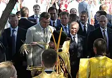 Patriarch Kirill of Moscow and All Rus at Yanukovych's invitation conducted a public prayer service at Kyiv Pechersk Lavra before Yanukovych's presidential inauguration.[78] Patriarch Kirill also attended the inauguration along with High Representative of the Union for Foreign Affairs and Security Policy Catherine Ashton, United States National Security Advisor James Jones and speaker of the Russian parliament Boris Gryzlov.[79][80]