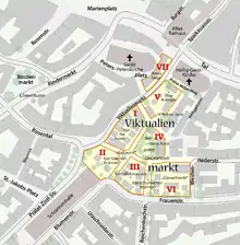 The Viktualienmarkt is a daily food market and a square in the center of Munich, Germany. It has been held daily since 1807, except on Sundays and public holidays.