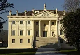 In the early twentieth century, senator Jacopo Gasparini set up a museum of African relics on the ground floor of the west barn, decorating the environment in a neo-Egyptian style. The artifacts had been acquired during his long diplomatic experience as governor of Eritrea and ambassador to Yemen. In the 1950s, in the part of the estate towards Montello, the subsequent owner Count Piero Loredan (son of Lia Gasparini, daughter and heir of Jacopo)[1] also founded a wine estate, called Conte Loredan Gasparini, which was then separated from the villa and sold to the current owners in 1973.[2] At the end of the century the villa was bought by Benetton, on whose behalf it was completely restored by Afra and Tobia Scarpa, as part of a project aimed at creating the headquarters of the Sportsystem project of the fashion group.