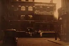 Frederick and his older brother Alfred appeared in the bankruptcy courts in 1898[50] and on 14 May that year the company was incorporated as Vincent Brooks, Day & Son Ltd.[51] During this time the firm's premises in Gate Street were badly damaged by fire. It started around ten o'clock in the evening of Sunday 10 April and quickly spread through the buildings. It is reported that 'the whole of the main building, containing about 40 printing machines and a great quantity of type, had been entirely destroyed'.[52] As a result, the run of Vanity Fair prints temporarily switched to colour offsets produced by P.W. Van De Weyer over in the Netherlands[53] and the firm moved to a new home in Parker Street just a couple of minutes walk west of Gate Street.[51]