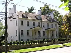 The Vincentown Historic District is a 92-acre (37 ha) historic district roughly bounded by Mill, Church, Pleasant, Main, and Race Streets, and Red Lion Road encompassing the community. It was added to the National Register of Historic Places on September 21, 1988 for its significance in architecture, commerce, industry, religion, and social history. The district includes 160 contributing buildings and 3 contributing sites.[14] The John Woolston House, a two and one-half story brick house with Federal style, was previously documented by the Historic American Buildings Survey in 1938.[15] The house at 57 Main Street is a three story Italianate style house featuring a cupola with a tree-type finial. It was built c.1865 and is a key contributing property.[14]