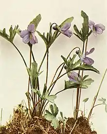 Viola brittoniana, known as coast violet, northern coastal violet and Britton's violet, is a rare, acaulescent blue-flowered violet that is endemic to the eastern United States. It has distinctive leaves with narrow lobes and deep sinuses.[1] It is a perennial.[2]