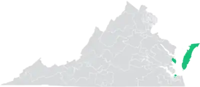 Former District 6 was a disparate district which included Accomack County and Northampton County on the Eastern Shore, Mathews County on the Middle Peninsula, and parts of the Hampton Roads cities of Norfolk and Virginia Beach.[5]