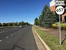 North of US 50, SR 657 becomes Centreville Road, a divided highway, mostly four lanes wide except at its northern end. There are commercial districts at the southern and northern ends; otherwise most of Centreville Road also divides business parks from residential areas.