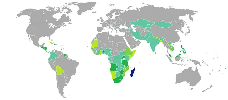 Visa requirements for Malagasy citizens are administrative entry restrictions by the authorities of other states placed on citizens of the Madagascar. As of 2 July 2019, Malagasy citizens had visa-free or visa on arrival access to 52 countries and territories, ranking the Malagasy passport 91st in terms of travel freedom (tied with a passport from Guinea-Bissau) according to the Henley Passport Index.[1]
