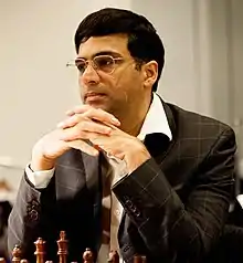 Viswanathan "Vishy" Anand (born 11 December 1969) is an Chennai-based Indian chess grandmaster and a former five-time World Chess Champion.[2] He became the first grandmaster from India in 1988, and has the eighth highest peak FIDE rating of all-time.[3] In 2022, he was elected the deputy president of FIDE.[4][5]