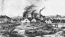 The iron works were continuously enlarged and finally purchased by the Viennese banker Salomon Mayer von Rothschild in 1843. He also financed the extension of the Emperor Ferdinand Northern Railway from Vienna to Ostrava with a branch-off to his steel mill, which was completed in 1855. His Rothschild heirs in 1873 founded the Witkowitzer Bergbau- und Hüttengewerkschaft, the largest iron and steel works in the Austro-Hungarian Monarchy. During the German occupation of Czechoslovakia their possessions were "aryanized" and taken over by the Reichswerke Hermann Göring conglomerate. At the ironworks, the Germans operated a forced labour "education" camp,[1] and a subcamp of a forced labour "education" camp from Moravská Ostrava.[2] After the war they were socialised as the Vítkovické železárny Klement Gottwald n.p. (VŽKG) by the Czechoslovak state.