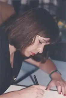 La Vie en rose[1] is a detective story by Dieter (scriptwriter) and Nicaise,[3] in three volumes, published by Glénat in the collection "Bulle noire" from 2003 to 2004. Nicaise promoted scientific training in an educational comic strip, Objectif sciences for the Île-de-France region in 2007. She turned to the fantasy genre for the diptych Post Mortem scripted by Romuald Pistis in the collection "HZ-Horizon" at Joker Éditions (2009-2010). For the collection "Grand Angle" of Bamboo Édition, Nicaise drew a new diptych, Le Cahier à fleurs, scripted by Laurent Galandon which described the Armenian genocide through the view of young orphans in 2010 and 2011. In an interview with Jean-Jacques Procureur, Nicaise declared that she had lived in Greece and was still there in December 2011.[4]