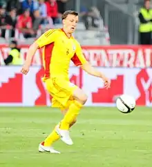 Chiriches made his debut for the senior team in an UEFA Euro 2012 qualifying match against Luxembourg on 2 September 2011.[30] On 14 August 2013, Chiricheș became the captain of Romania, in the friendly draw 1–1 over Slovakia. His competitive debut as captain was on 6 September, a 3–0 victory against Hungary, in a 2014 FIFA World Cup qualifying game.