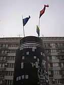The removal or destruction of Lenin monuments and statues gained particular momentum after the destruction of the Kyiv Lenin statue. Under the motto "Ленінопад" (Leninopad, translated into English as "Leninfall"), activists pulled down a dozen communist monuments in the Kyiv region, Zhytomyr, Khmelnytskyi, and elsewhere, or damaged them during the course of the EuroMaidan protests into spring of 2014.[9] In other cities and towns, monuments were removed by organised heavy equipment and transported to scrapyards or dumps.[10][11]