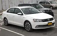The Volkswagen Jetta Turbo Hybrid was unveiled in January 2012 at the North American International Auto Show for the 2013 model year. It was developed due to Hybrid popularity in North America. The variant is powered by a 1.4 L TSI intercooled turbocharged engine producing 111 kW (149 hp; 151 PS) mated with a 20 kW (27 hp; 27 PS) electric motor providing a combined 127 kW (170 hp; 173 PS) and 249 N⋅m (184 ft⋅lb). It also has as standard a 6-speed DSG automatic transmission, with Sport and Tiptronic modes. The Jetta Turbo Hybrid has an estimated combined fuel economy of 5.2 L/100 km (54 mpgimp; 45 mpgUS).[14] Sales of the 2013 Jetta Turbo Hybrid began in the U.S. by late 2012.[15] In mid-2016, the Hybrid model (as well as the diesel option) was discontinued from the U.S. market without replacement.[8]