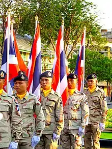 The Volunteer Defense Corps (Thai: กองอาสารักษาดินแดน; abbreviated VDC) is a paramilitary under the authority of the Department of Provincial Administration (DOPA), Ministry of Interior.[1] It was founded in 1954 to provide extra military support to the Royal Thai Armed Forces and to protect local civilians living near Thailand's borders.[2][3]