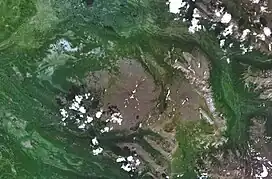 Voyampolsky (Russian: Воямпольский) is a volcano located in the northern part of the Kamchatka Peninsula, Russia. It is composed of two shield volcanoes, Voyampolsky and Kakhtana. Voyampolsky is the highest one. Headwaters of the Kakhtana River are located nearby.