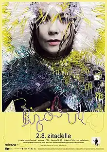 Björk headlined the Ceremonia Festival in Toluca, Mexico on 2 April 2017[13] where she and Arca played a strings and electronics set and debuted Arca's remix of Björk's 1995 song, "Isobel".[14] She performed a similar strings and beats show in downtown Los Angeles at FYF Fest on 21 July 2017[15] and at Fuji Rock in Japan.[16]