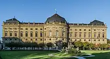 The revolutionaries nevertheless tried to keep the Soviet Republic alive. They occupied strategically important buildings and during the night of 8–9 April held 16 hostages captive in the Würzburg Residence but treated them well. Among the hostages was Second Mayor of Würzburg Bernhard Brand.[5] For their part, the opponents of the Soviet took two members of the Revolutionary Action Committee into their power. On 9 April a united front of the MSPD, the Bavarian People's Party, monarchists and magistrates called for a "citizens' strike". Würzburgers of all classes laid down their work in protest. The 2nd Artillery Regiment of the Bavarian Army attacked the council supporters. After a two-hour battle for the Residence and the main train station during which 29 people were killed,[6] the Würzburg Soviet Republic was overthrown. The Marienberg Fortress in Würzburg also fell into the hands of the council opponents. The decisive factor in the rapid victory that brought joy to most Würzburgers was thought to be the confusion among the Soviet's leaders in the Residence.[7]