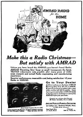 - ↑ "AMRAD Radio" (advertisement), Popular Radio, December 1922, page 5.