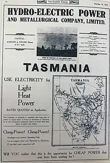 The privately owned Tasmanian Hydro-Electric Power and Metallurgical Co. Ltd. (HEPMCo) first took a serious interest in generating hydro-electric power from one of Tasmania's highland rivers in late 1909, to provide power for James Hyndes Gillies' newly patented electrolytic process for zinc refining, and a "carbide" smelter to be constructed near Snug. They resolved to construct a hydro-electric power plant in the valley of the Ouse River, above the town that bears that name. Water was to be provided by a small dam on the great lake at Miena, which would then divert water down the steep drop using a woodstave pipeline and a flume. Construction began in earnest in 1910.