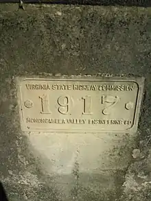 The bridge was constructed over the ford in 1917 by the Monongahela Valley Engineering Company of Morgantown, West Virginia.