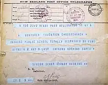 - ↑ "Police Report". The Waikato Times. Vol. 98, no. 16065. 15 August 1924. p. 2. Retrieved 2 March 2020 – via Papers Past.