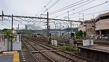 - ↑ 1日の駅別乗降人員 [Station passenger figures (Fiscal 2019)] (in Japanese). Japan: Keio Corporation. 2020. Retrieved 6 March 2020.